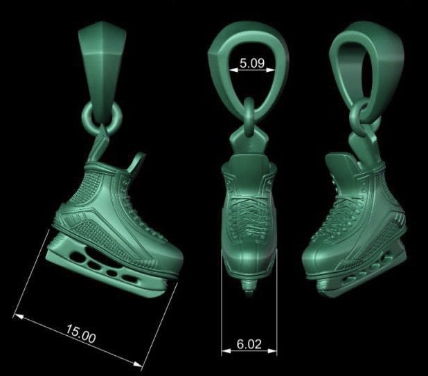 Объемный кулон в форме хоккейного конька.